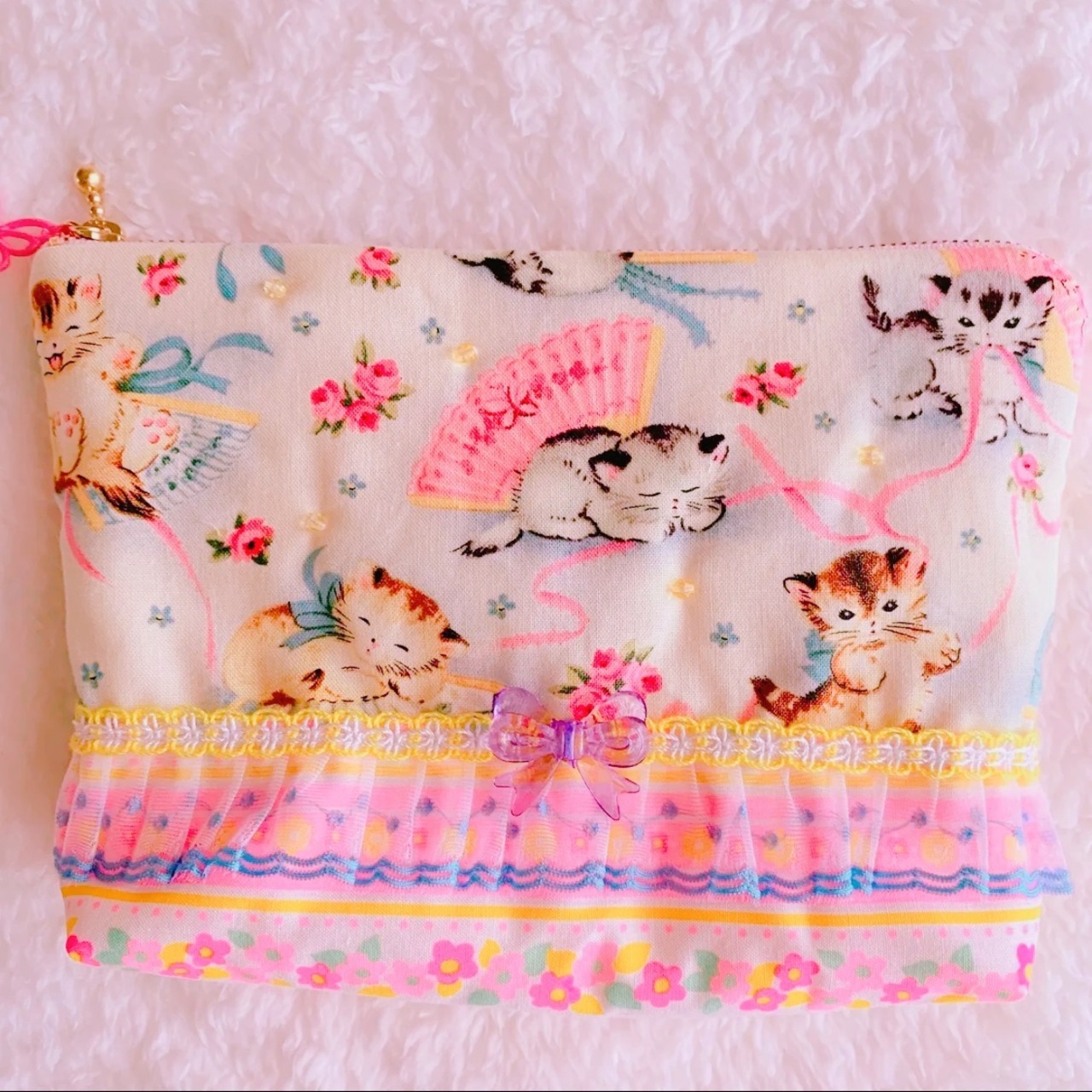 猫猫ポーチ 紫リボン