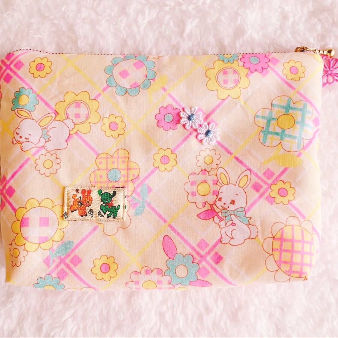 裏側はウサギちゃんの生地とヒツジちゃんのタグをつけました。