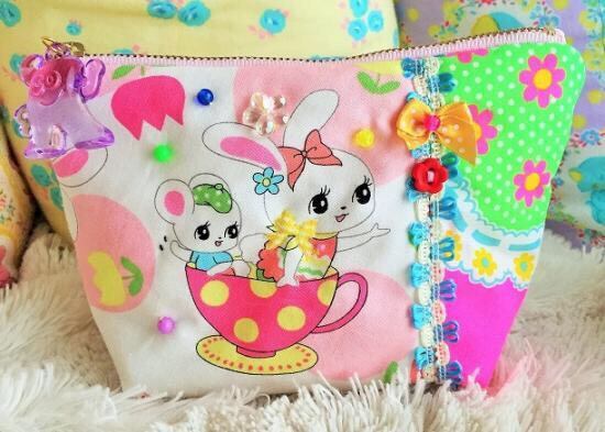 コーヒーカップに乗った レトロなアニマルさんのポーチです(^▽^)