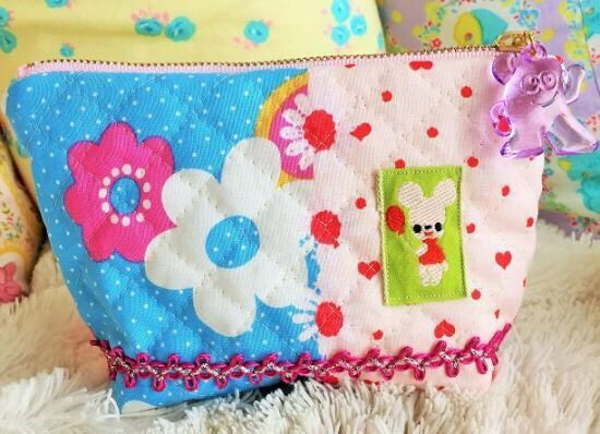 裏面はキルト生地で 風船くまさんをワンポイントで付けました。