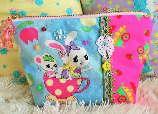 コーヒーカップに乗った レトロなアニマルさんのポーチです(^▽^)
