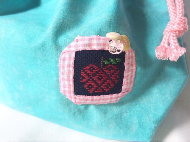 りんごのアップリケの巾着です\(^o^)/