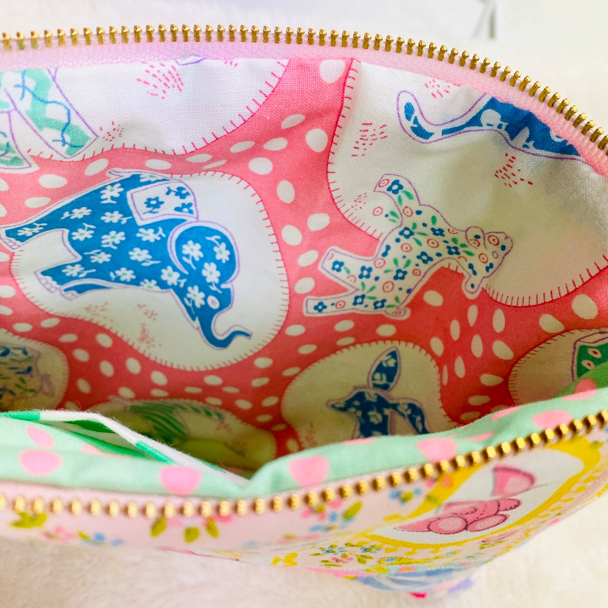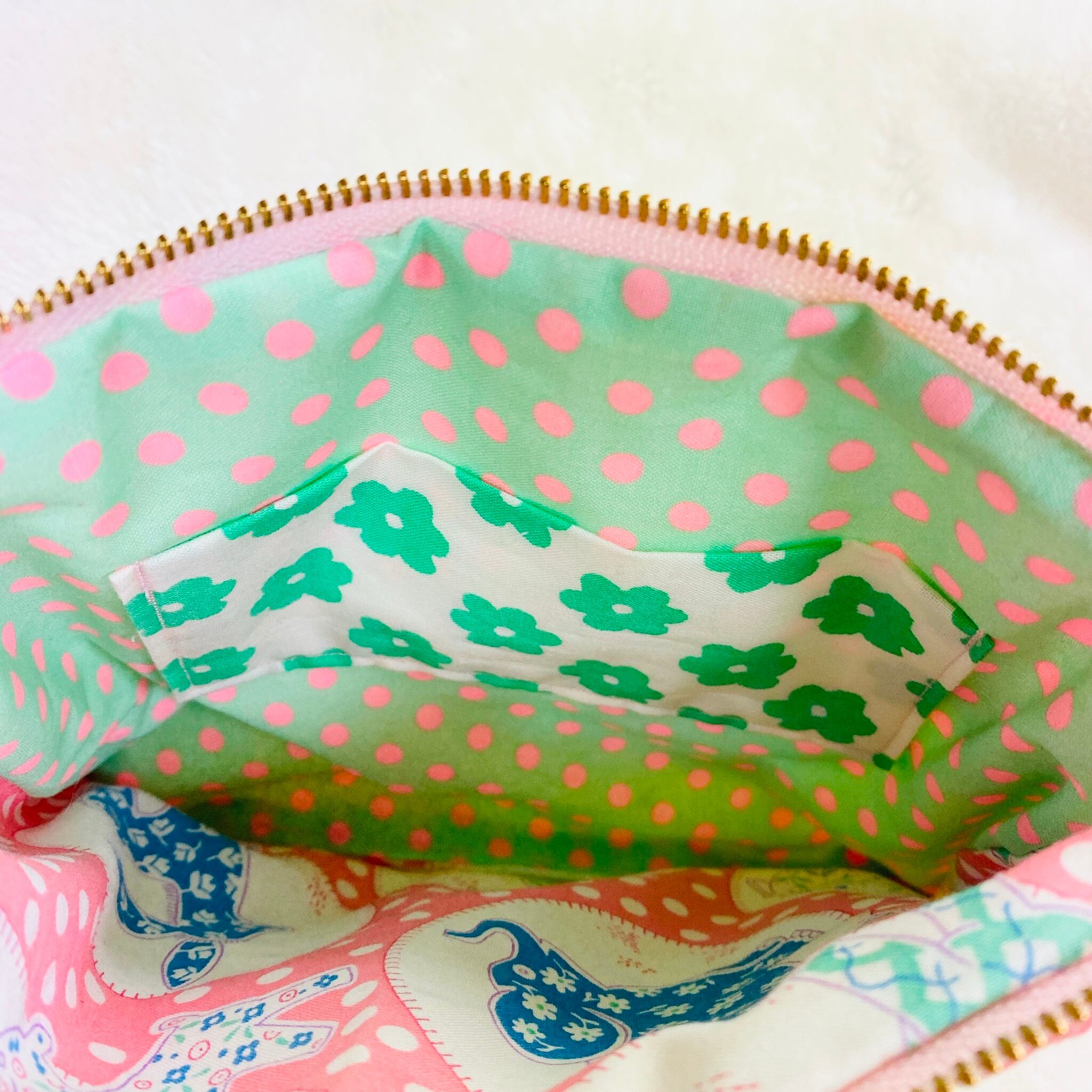 内側はピンク系のアニマルドット柄とペパグリドット柄の