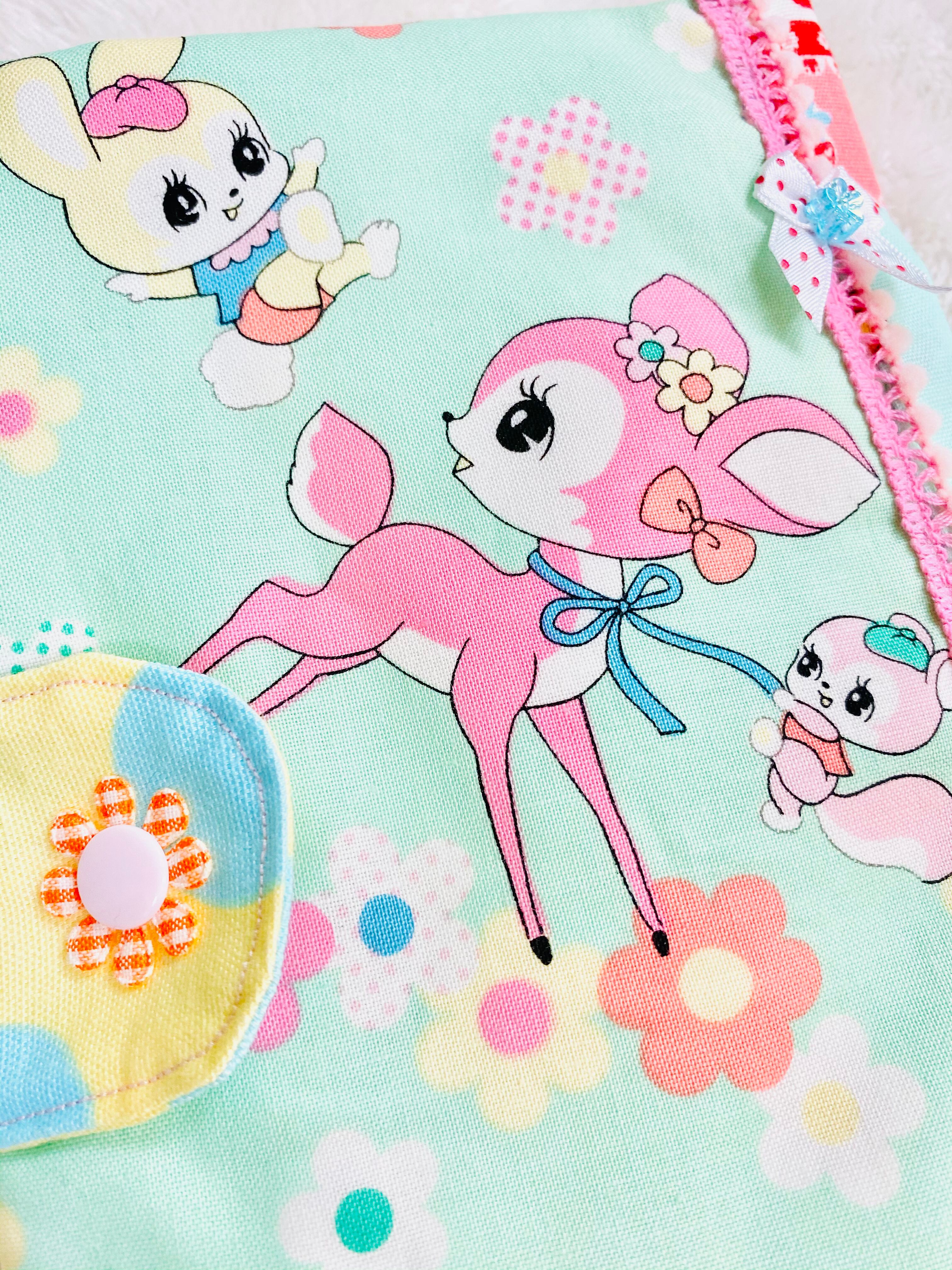 レトロなバンビちゃんウサギちゃんリスちゃん達の生地です。