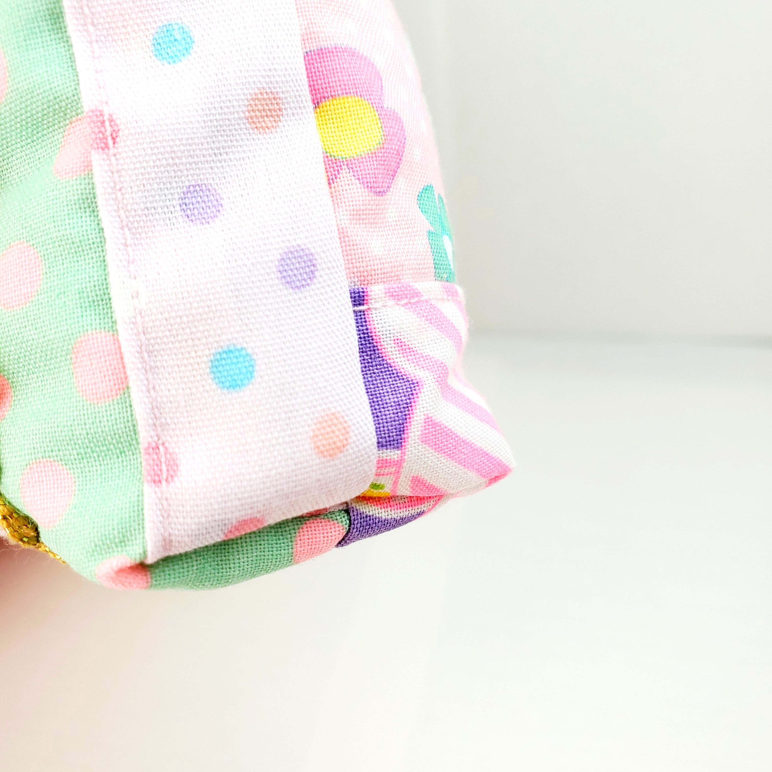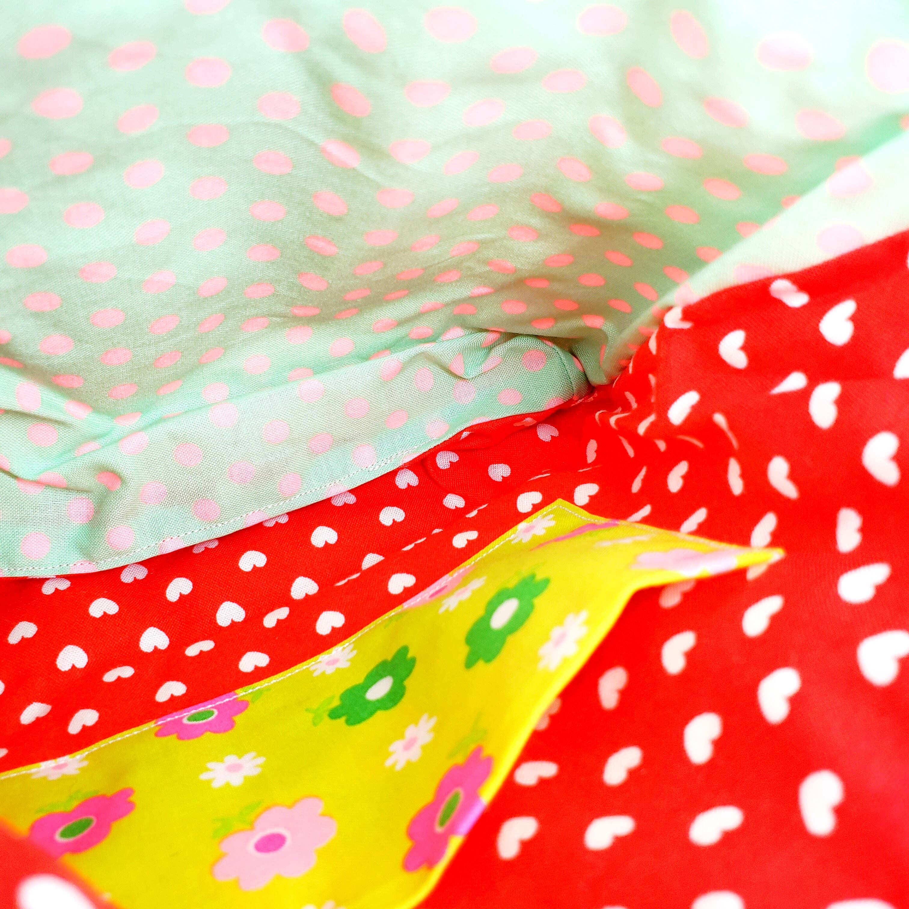 裏表、たくさんの生地やレースを使用してかわいくおつくり致しました!
