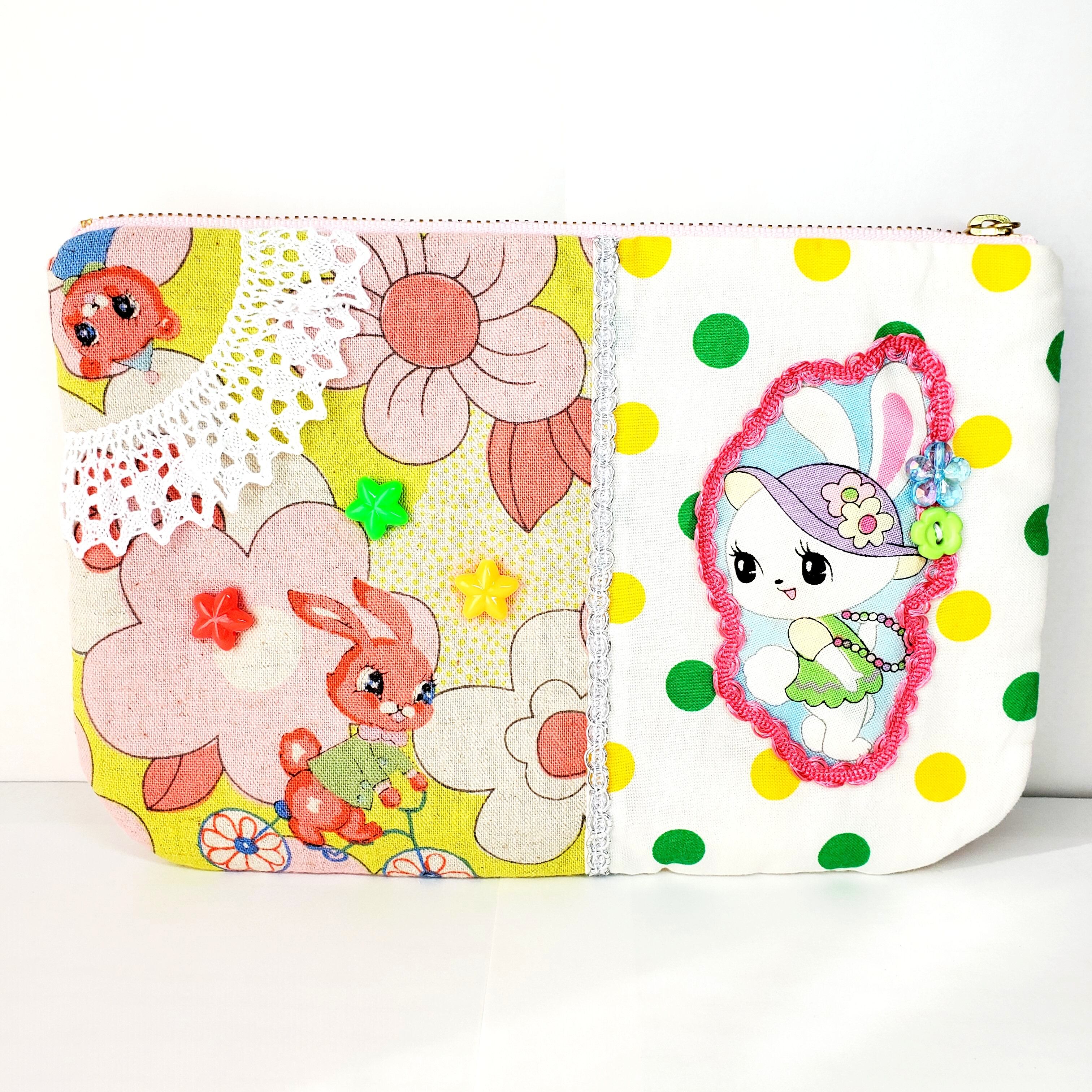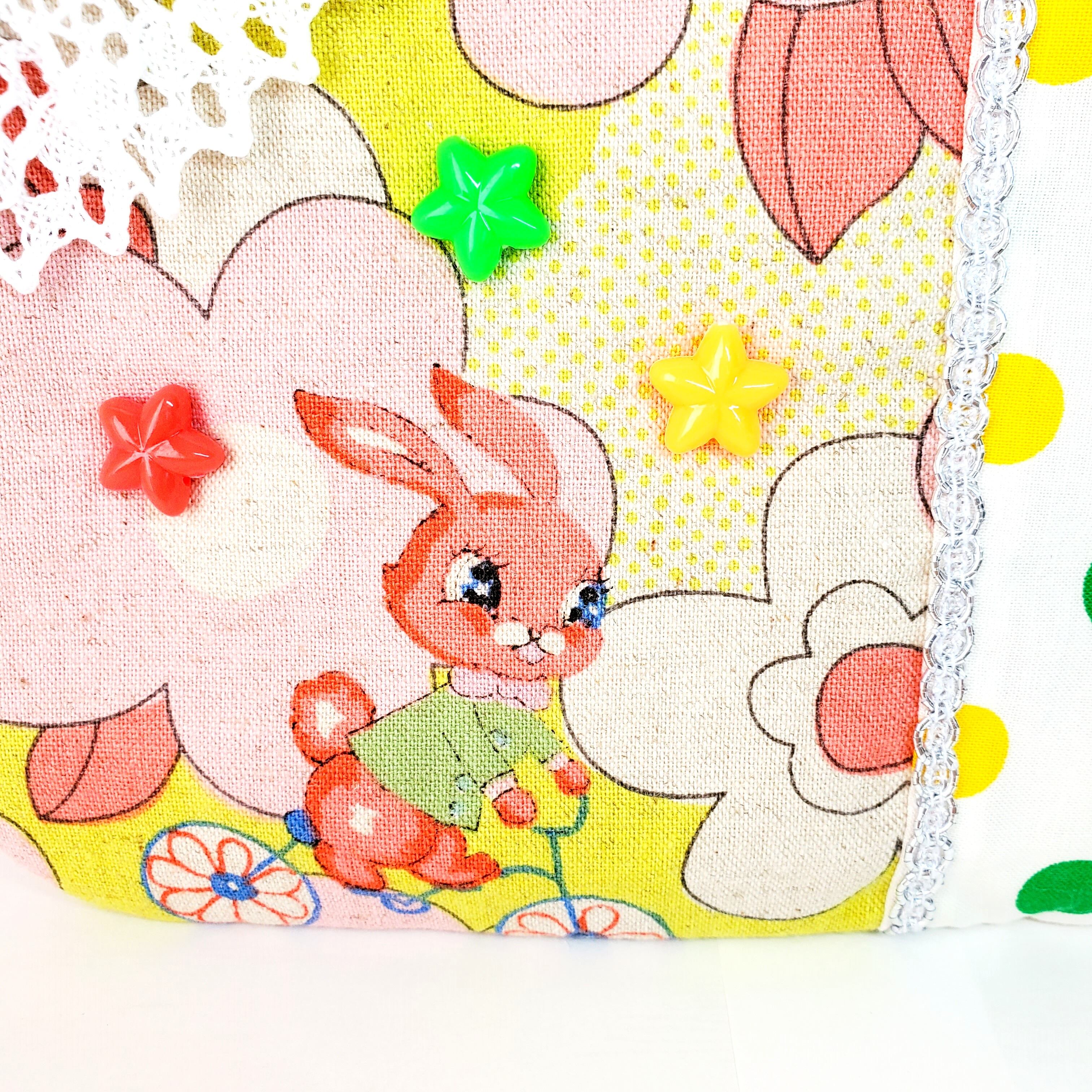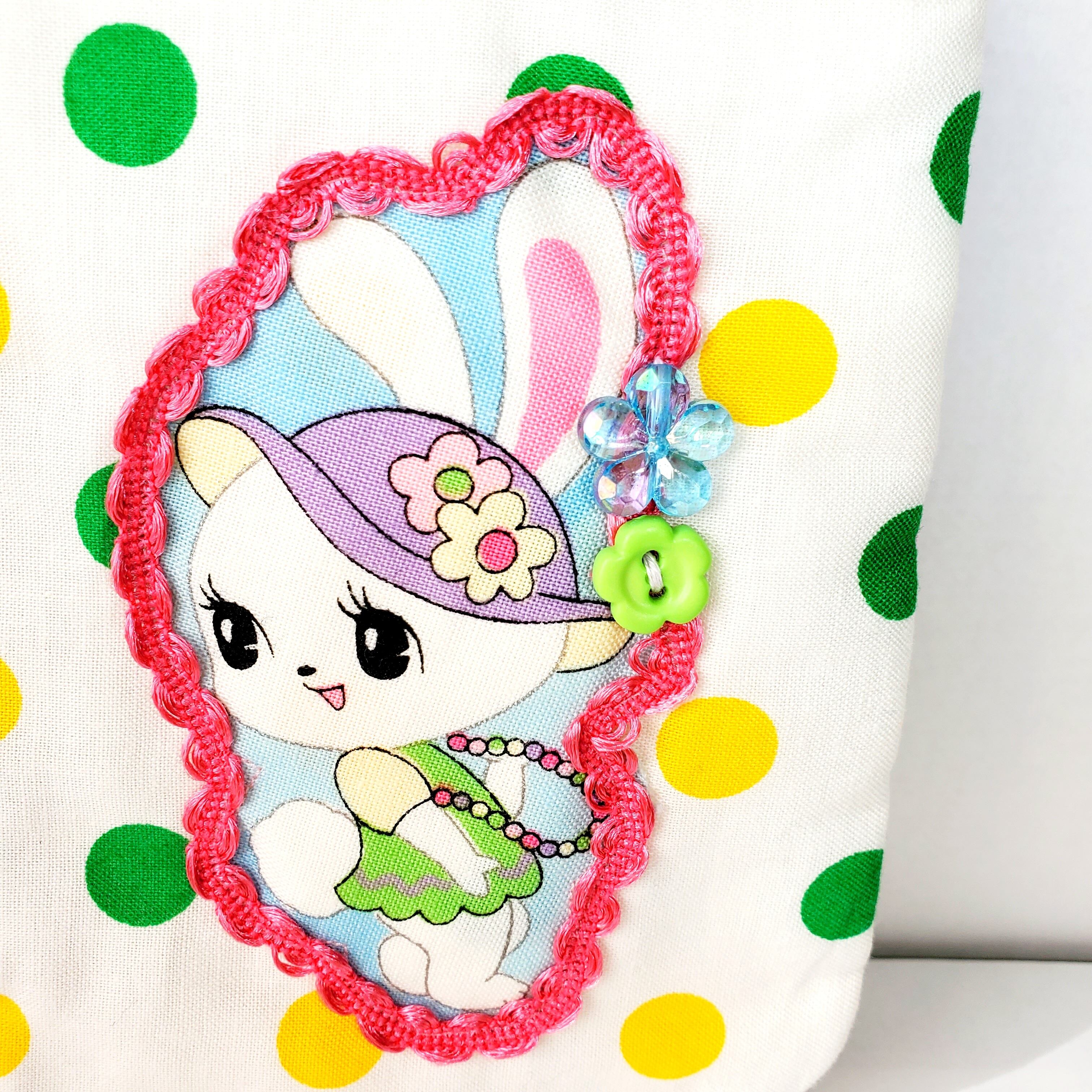 裏面もレトロなうさぎちゃんの生地を使用し、かわいくお作りしているので、
