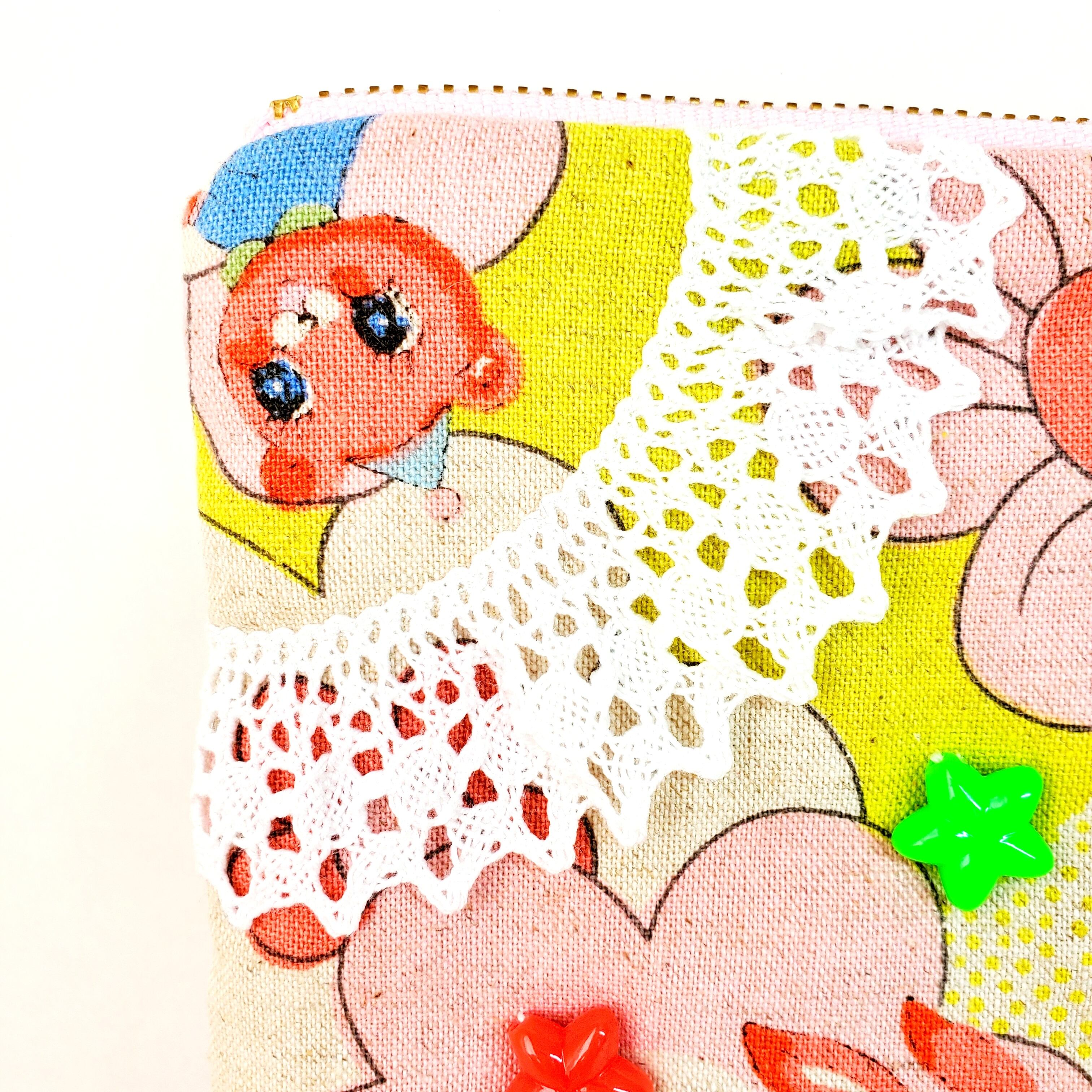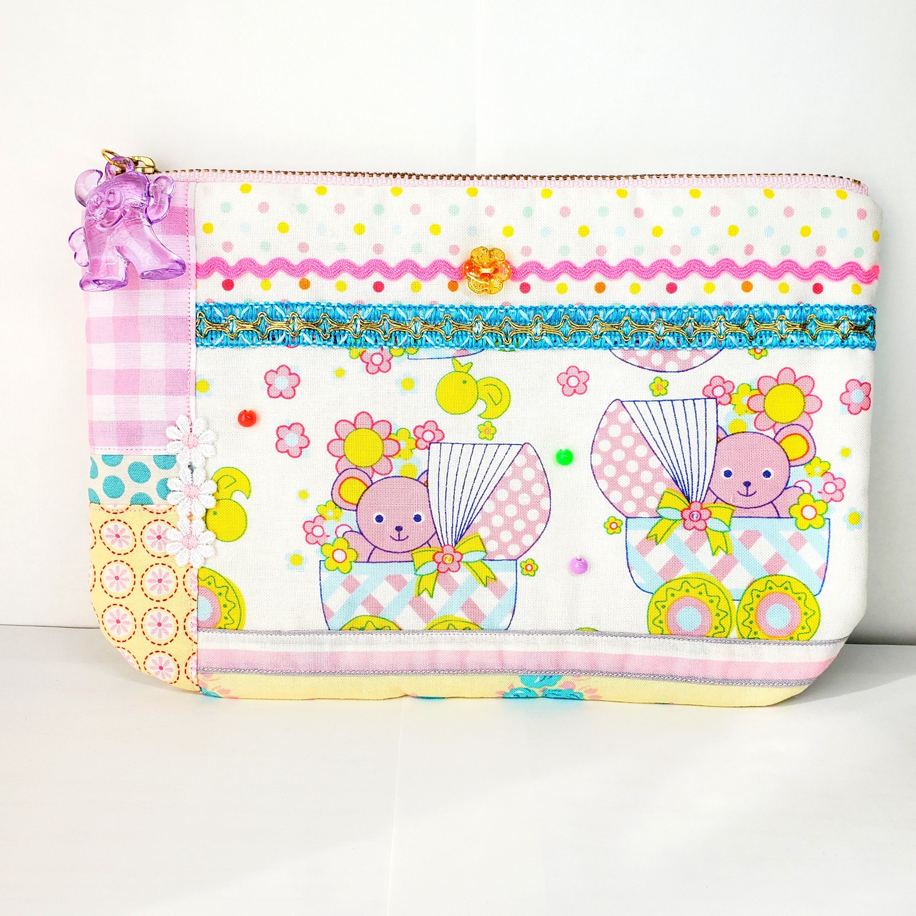ベビーカーに乗ったくまちゃんがかわいいフラットポーチです(^▽^)