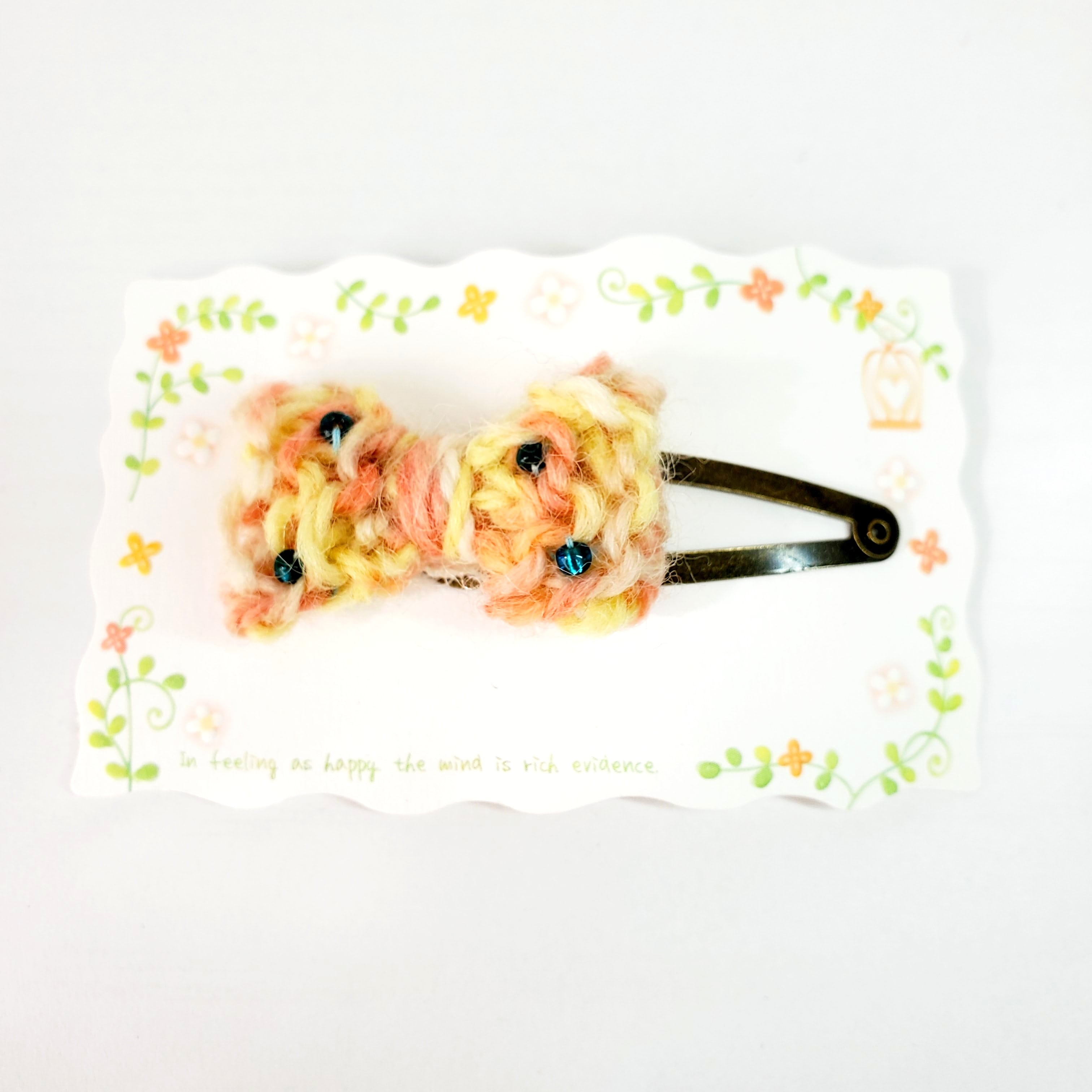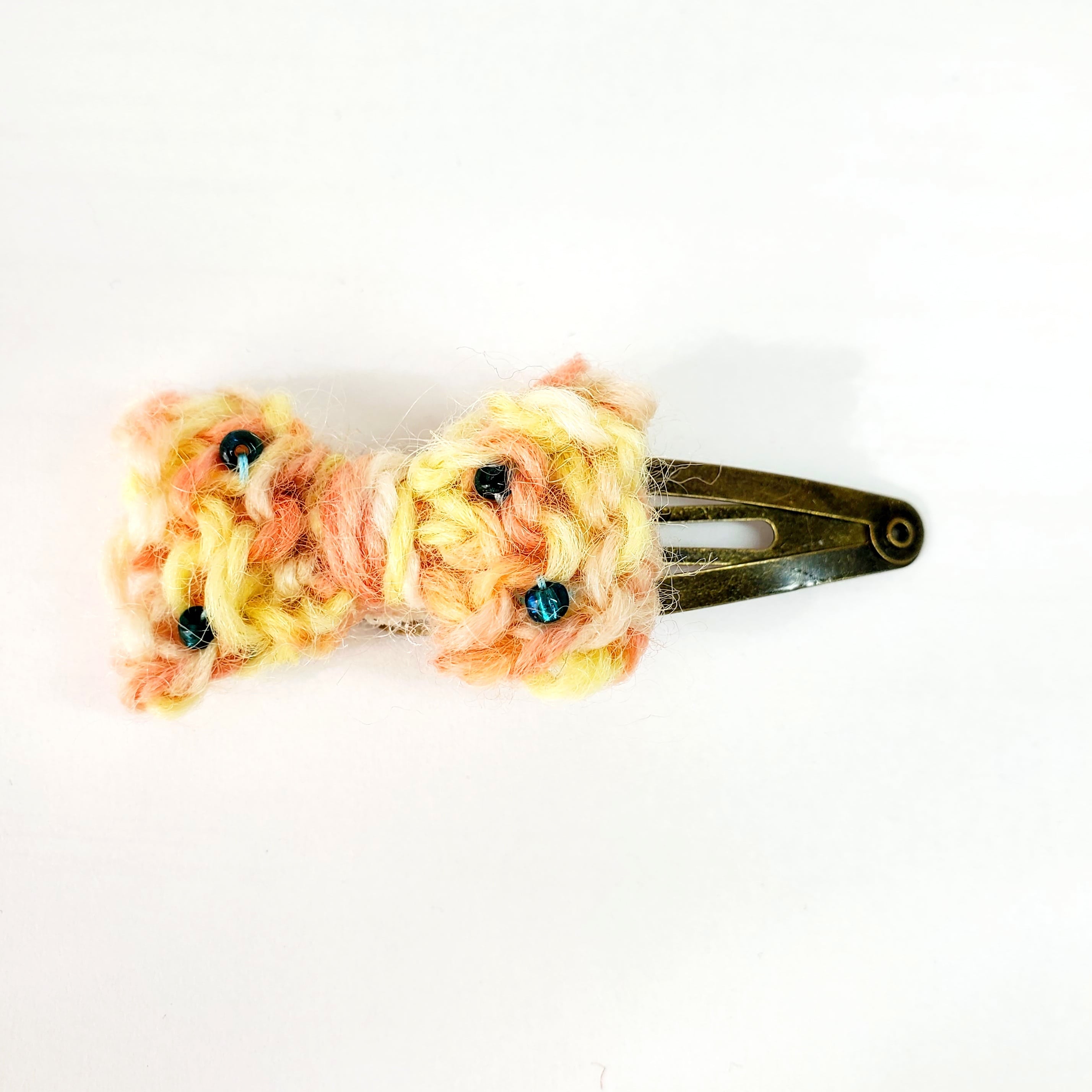 毛糸でおつくりしたリボンのパッチンどめです(^^)/