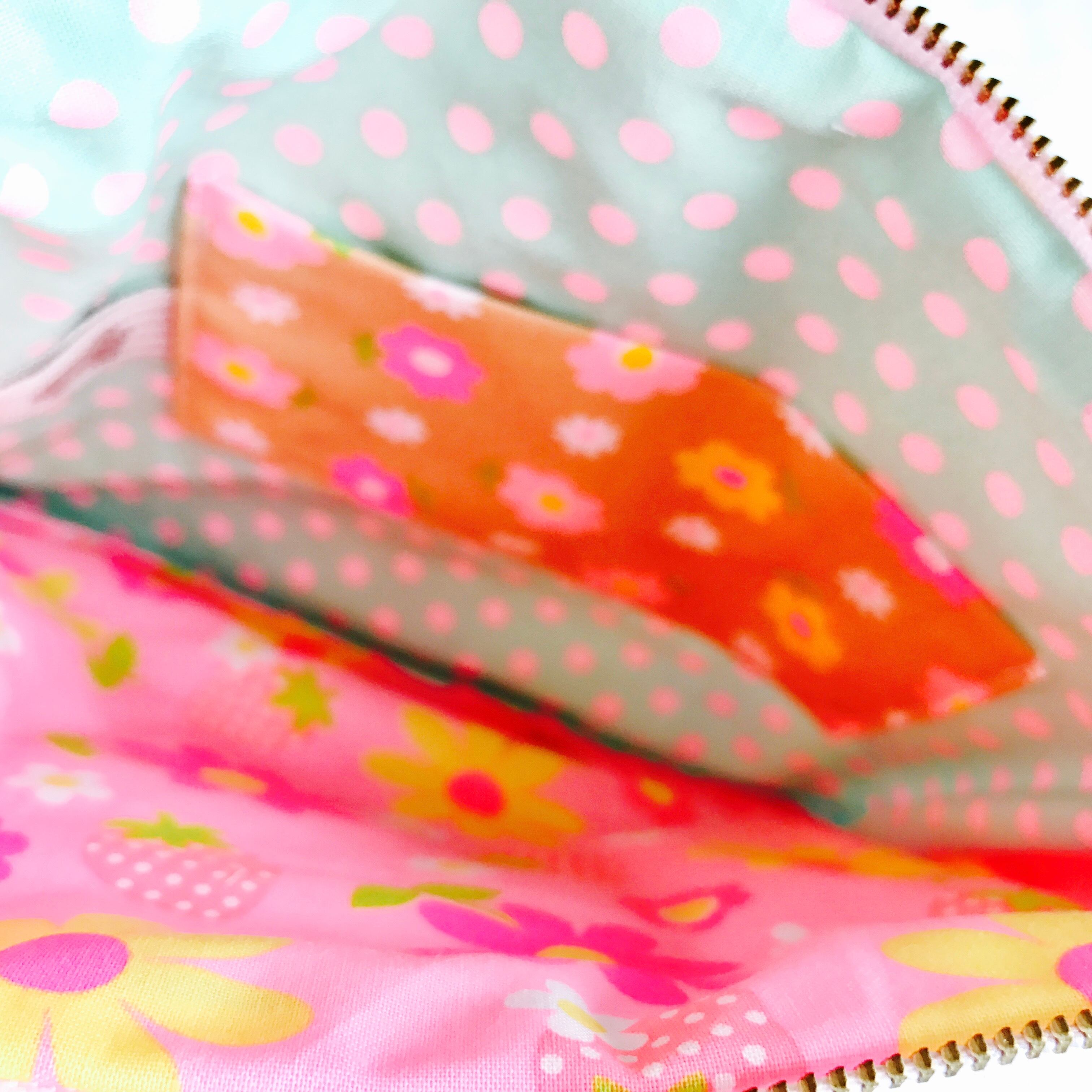 内側はペパグリーンのドット柄とフラワー柄の